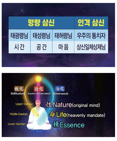 이 망량계를 후대에 삼신 세계, 본체 세계라 불렀고, 이 삼신 세계에 세 분이 계신다고 했습니다. 이 우주의 근원이 되는 태허령太虛靈님과, 공간의 주신인 태성령太聖靈님 그리고 과거, 현재, 미래를 다스리는 태광령太光靈님이 계시는 것입니다.