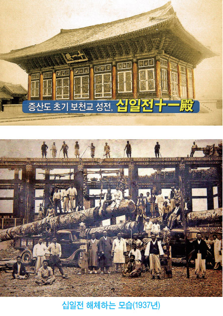 예전에 증산도가 개척되어 나가던 때인 해방 전에 700만 신도가 있었습니다. 그런데 일제의 탄압으로 그 도세가 기울어지자 정읍 대흥리에 있던 보천교普天敎 십일전十一殿이 뜯겼습니다. 그때 그 십일전을 서울에 옮겨 지었는데 그 건물이 조계사 대웅전입니다. 대한민국 천만 불교도의 본전本殿이 원래 증산도의 큰 궁전이었던 것입니다.