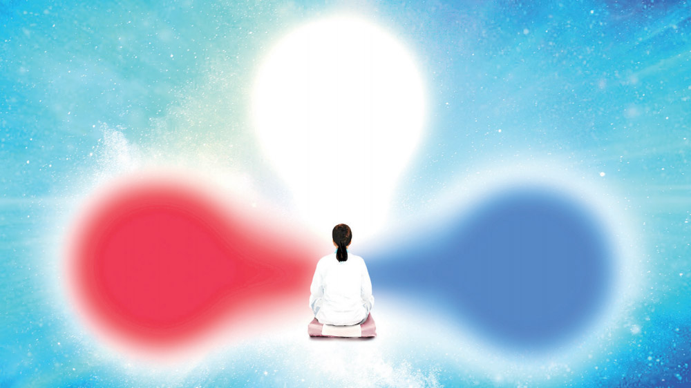 이렇게 꼰 빛 유전자를 두 팔에 꽉 채우고 머리에 꽉 채운다고 생각합니다. 목과 오장육부, 뼈, 근육, 골수, 혈관, 손톱, 발톱까지 꽉 채운다고 생각합니다. 그렇게 채우고서 ‘빛 폭발 수행’을 합니다.