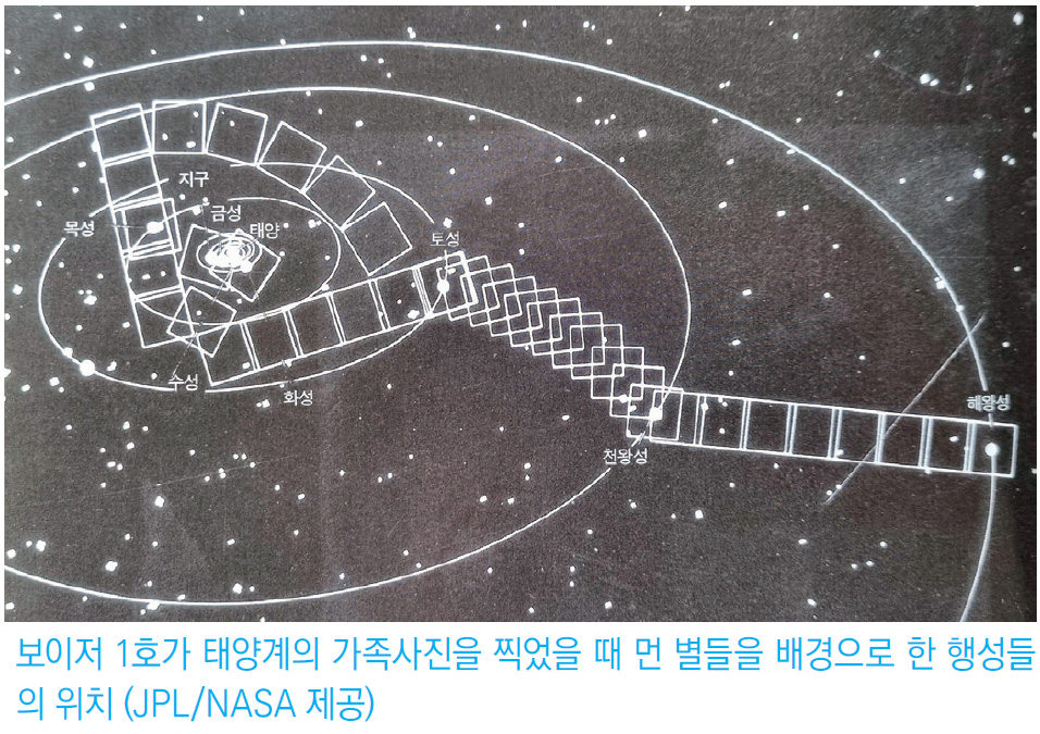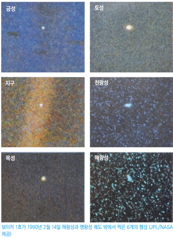1977년 미국 항공우주국(NASA)의 그랜드 투어Grand Tour 계획에 의해 발사된 외우주 탐사선 〈보이저Voyager 1호〉는 해왕성과 명왕성의 공전 궤도를 벗어나며 1990년 2월 지구로부터 64억 킬로미터 떨어진 위치에서 태양계 행성들을 촬영했다. 그리하여 지구를 비롯해 금성, 목성, 토성, 천왕성, 해왕성을 촬영할 수 있었다. ‘