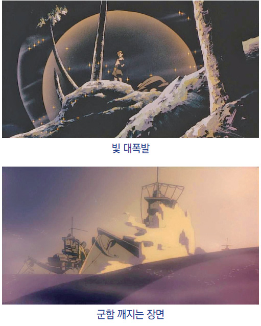 아몬이 가진 빛의 힘이 가장 광범위하게 노출되는 장면이 영화 중반에 나온다. 바다 부족을 침공한 황금룡 제국의 총에 친구의 엄마가 죽자 분노한 아몬은 자신의 몸 안에 있는 빛 에너지를 폭발시킨다. 이때 어마어마한 빛 에너지가 방출되고 섬의 군사들과 전차들, 그리고 바다에 대기하던 군함들까지 모두 파괴된다. 상제님께서 일심을 가진 자는 능히 만 리 밖에 있는 군함을 깨뜨린다고 하셨는데, 이 성구를 떠올리게 하는 장면이 연출된다.