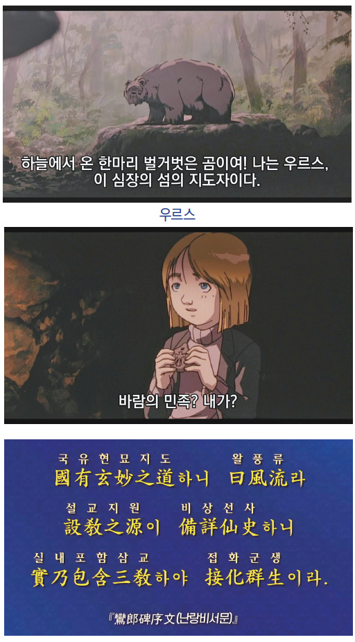 이 애니메이션은 빛의 힘과 바람의 민족에 대한 이야기로 증산도 동방신선학교의 빛꽃 수행을 떠올릴 만한 내용이 있고, 『환단고기桓檀古記』의 원형 문화 언어인 ‘풍류風流’의 관점에서 볼 때도 해설할 내용이 많다고 생각된다.