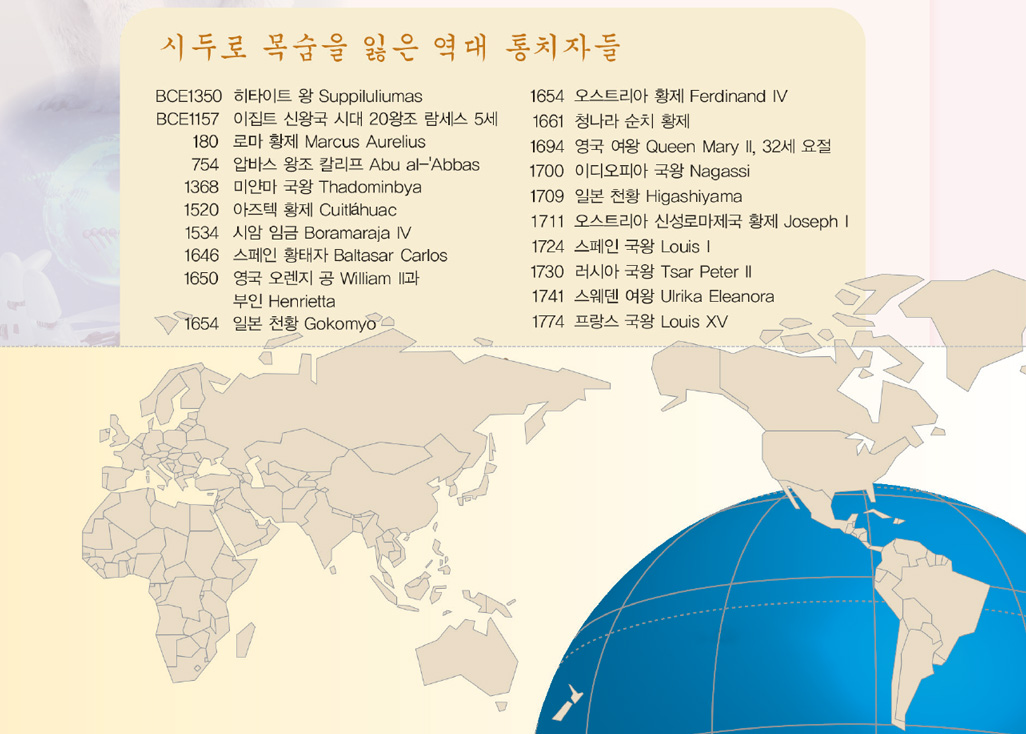 시두는 다른 전염병과 달리 인류사에 자주 등장한다. 인도는 고대부터 ‘시탈라 마타Shitala Mata’라는 이름의 여신으로 시두를 숭배해 왔다. 시두가 터질 때는 신명들이 시두 기운인 ‘천화天花’를 뿌리고 다닌다고 한다. 그래서 한국은 ‘마마신’, ‘시두 손님’이라 존대하면서 얼른 지나가기를 바랐다. 이 시두는 세계사를 주도한 왕과 황제들의 목숨을 앗아 갈 정도로 제국의 건설과 문명의 붕괴 등에 영향을 미침으로써 역사의 주인이 바뀌는 분기점이 되기도 했던 ‘심판의 여신’이었다.