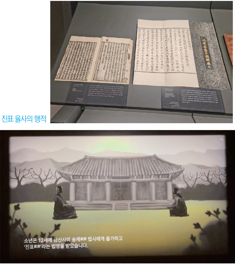 특별전에는 금산사를 미륵 도량으로 만든 진표 율사의 전기를 담은 책과 전기를 토대로 만든 애니메이션 영상이 상영되고 있다. 이외에도 이마에 왕王이 새겨진 도깨비얼굴무늬 수막새와 오층석탑에서 출토된 사리장엄구 등이 전시되어 있다.