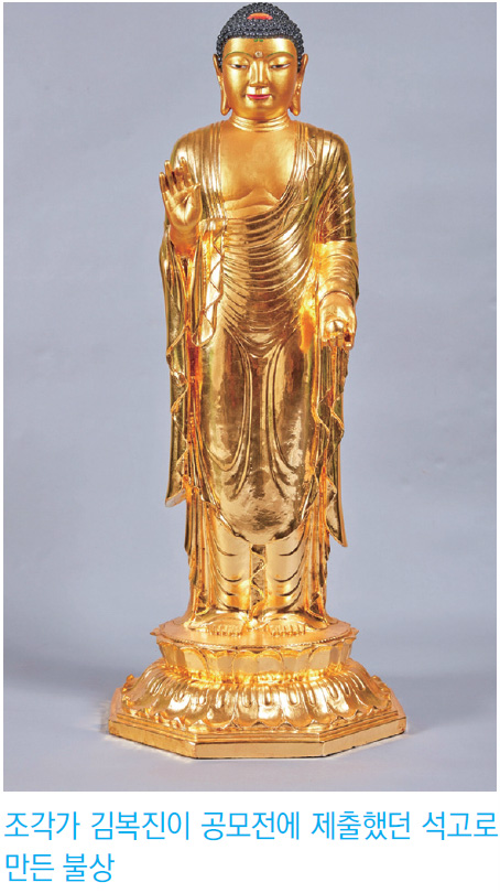 김복진이 만든 금산사 미륵불은 사실적인 신체 표현과 비례가 특징이며 근대 조각의 재료인 석고를 사용했다. 특별전에는 김복진이 공모전에 제출했던 높이 약 1미터의 불입상이 전시되어 있다. 또한 2006년 금산사 미륵불의 오른쪽 협시불夾侍佛의 내부에서 수습된 복장물腹藏物도 전시되어 있다. 복장물에는 황초폭자黃綃幅子(후령통을 싸는 보자기)에 싸인 후령통喉鈴筒(복장물을 넣는 통)과 매듭 장신구, 직물, 경전류가 나왔으며 후령통 안에서 원경⋅방경⋅반월경 등의 사방경四方鏡과 팔엽연화八葉蓮花, 곡물류, 다양한 보석류 등이 확인되어 정성이 들어간 불사였음을 알 수 있다.