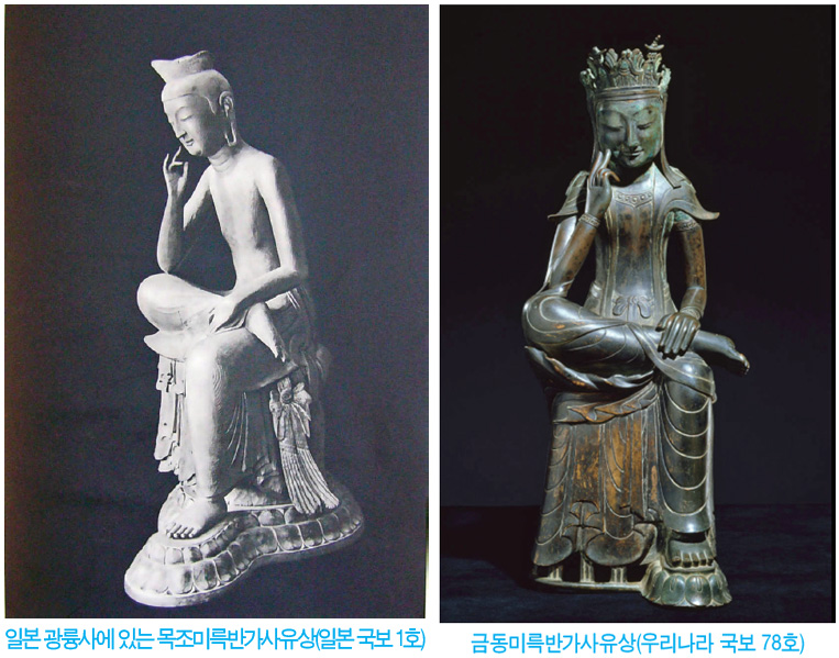 원효元曉(617~686)가 한 저서에서 제기한 ‘미륵불 당신은 누구십니까?’라는 시적인 한마디에서 저는 큰 감동을 받았습니다. 독일의 유명한 철인 칼 야스퍼스Karl Jaspers(1883~1969)는 지구촌에 많은 예술품이 있지만 인간 실존에 대한 궁극의 답을 제기하는 예술품으로 미륵반가사유상彌勒半跏思惟像을 들었습니다. 이 불상은 현재 일본의 국보 1호입니다.