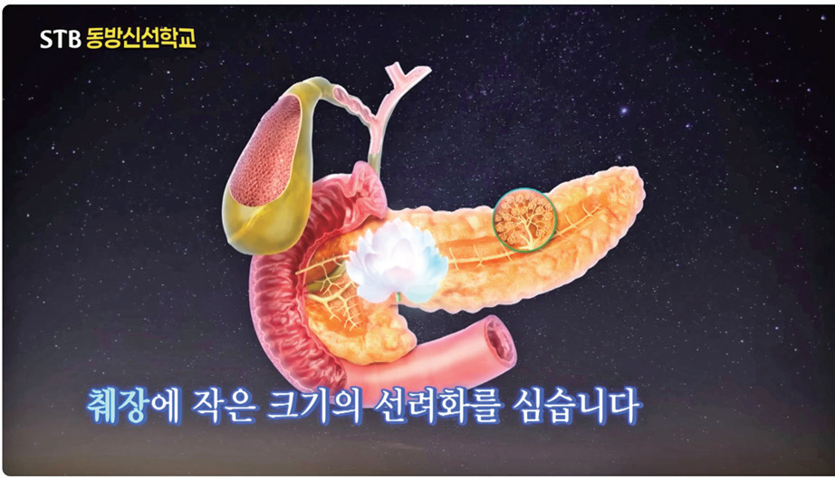 지금 온몸에 적어도 몇조 송이가 있는데 이 꽃을 기본으로 하면서 한 3분, 5분 단위로 아픈 곳에다가 생각으로 꽃을 툭툭툭 더 심으세요. 온몸에 있는 꽃에서 요정妖精들이 나옵니다. 그 꽃을 크게 다섯 가지로도 말합니다.