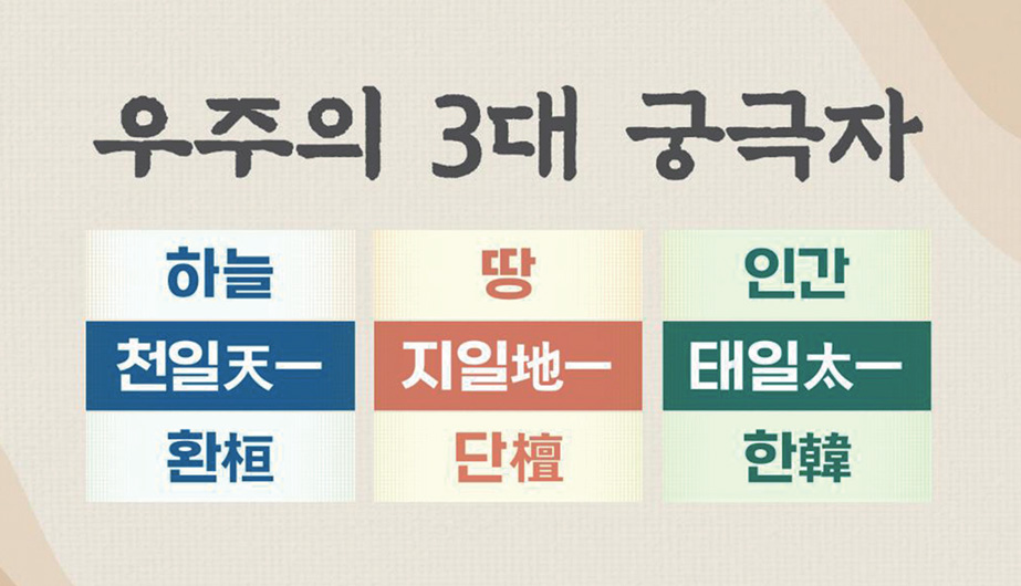 근대 서양 철학에서 인간 존엄, 휴머니즘, 인류애를 이야기하고 있지만, 그보다 수천 년 전 동방의 태고 문화에서는 하늘 땅과 어깨를 나란히 하는 인간을 선언하고 있습니다.