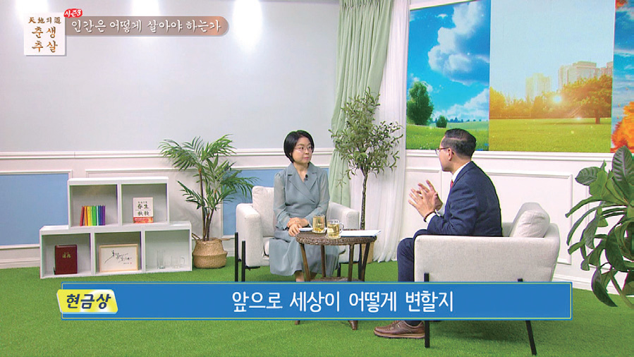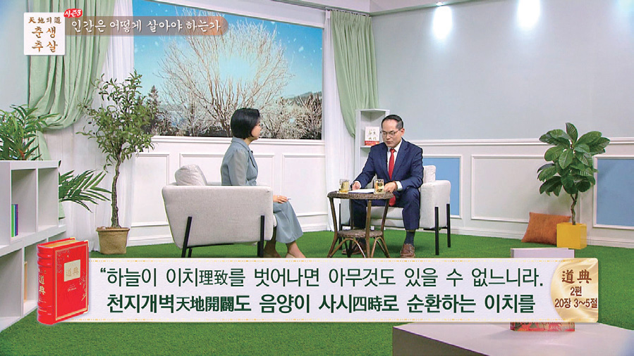 ● 방송소개 : 지금은 바야흐로 우주년의 여름에서 가을로 바뀌는 환절기, 하추교역기이다. 천지의 질서가 바꿔지는 때인 것이다! 천지가 둥글어 가는 이법이 『천지의 도 춘생추살』 책 속에 담겨 있다. 천지가 사람 농사를 짓는 이치와 대자연의 섭리를 〈춘생추살〉 프로그램을 통해 알아본다.