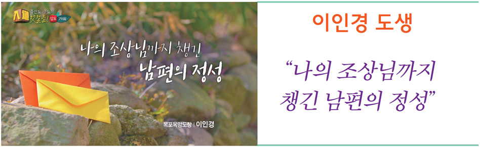 신앙의 반대에서 입도까지, 남편 박 도생님의 정성과 애정이 이 도생님을 신앙의 길로 인도한 것 같죠? 조상님에 대해 정성이 가득한 사위와 그런 사위를 남편으로 만나 입도까지 한 이 도생님을 보고 계실 조상님들께서 정말 기쁘실 것 같습니다. 입도 축하드립니다.