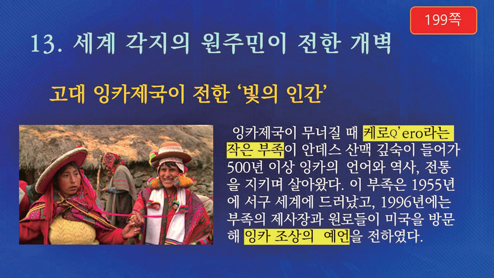 이번에는 세계 각지의 원주민原住民이 전하는 개벽에 대해 살펴보겠습니다. 먼저, 고대 잉카Inca 제국이 전한 빛의 인간에 대한 이야기입니다.