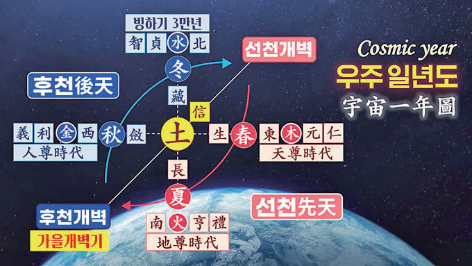 이 말은 시간의 주기週期가 바뀐다는 의미입니다. 이를 이해하려면 우주론宇宙論의 기초 지식이 필요합니다.