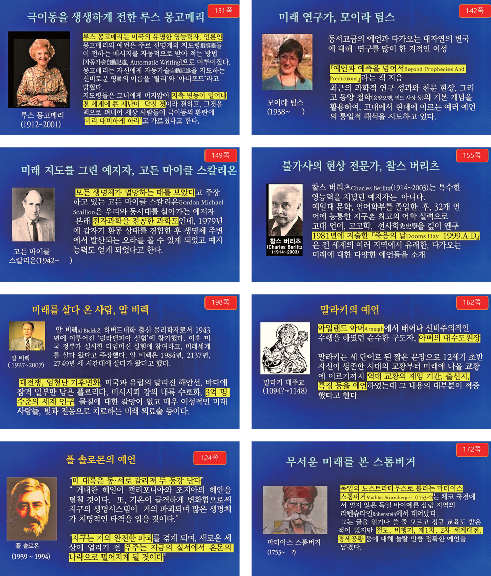 이번 『이것이 개벽이다 상上』 개정 3판의 제2부에서는 동서양의 예언이 대폭 증강되었습니다. 그 핵심 내용을 다섯 가지로 요약할 수 있습니다.