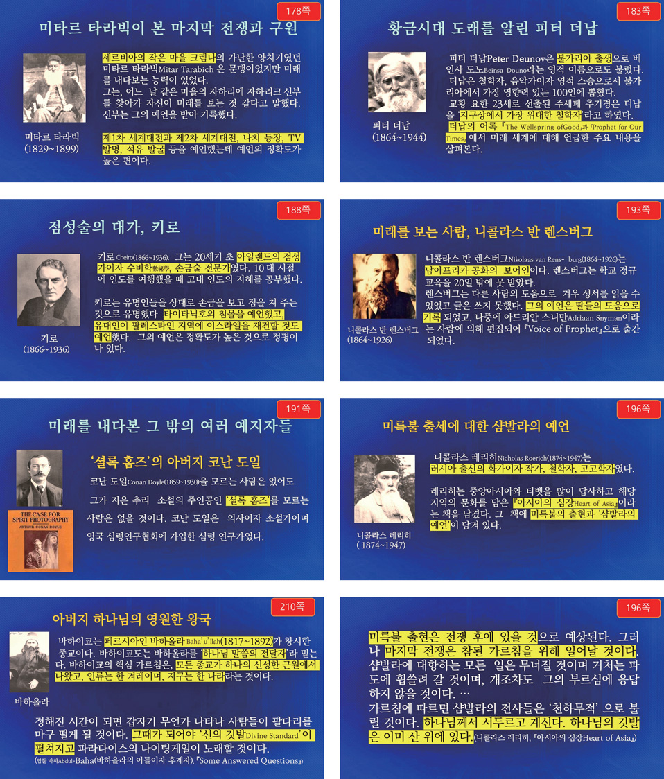 개정 3판에서는 예언의 내용이 많고, 여러 인물들이 등장하기 때문에 핵심적인 내용을 간추릴 것입니다. 개벽 책을 직접 읽고 정리를 하셔야 이분들이 말씀하시는 내용을 파악할 수 있을 것으로 생각됩니다.