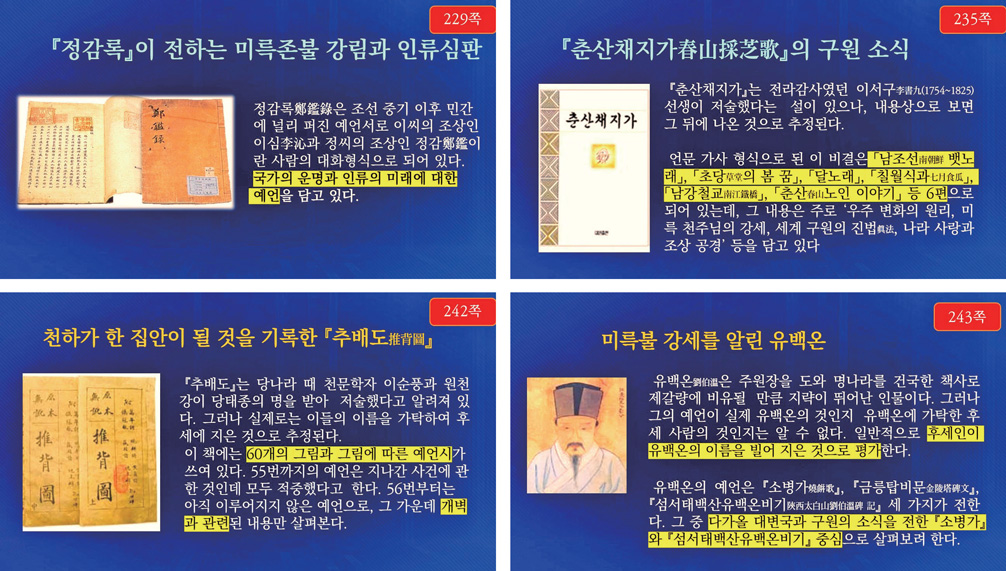 이렇게 동양의 여러 선지자들과 비결서들이 한결같이 서양과 마찬가지로 상제님의 진리를 방증하고 있습니다. 이는 우리와 세상 사람들에게 개벽에 대해 다시금 생각하도록 하는 말씀들이라고 볼 수 있습니다. ■