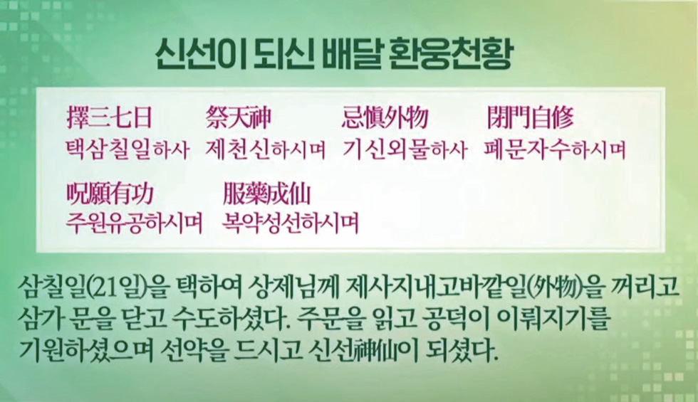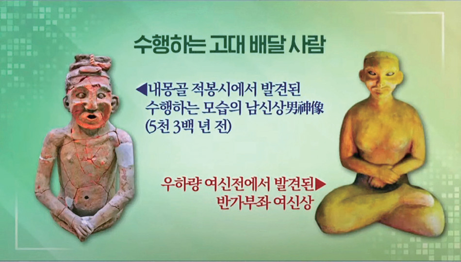 『환단고기』 「삼성기」 상편의 기록에 의하면 환웅천황께서 웅족을 교화하여 수행을 시키실 때 주문을 읽히셨다는 것이죠. 이 사건이 홍산 문화의 주문을 읽는 남신상과 여신상을 통해서도 입증이 되었습니다.