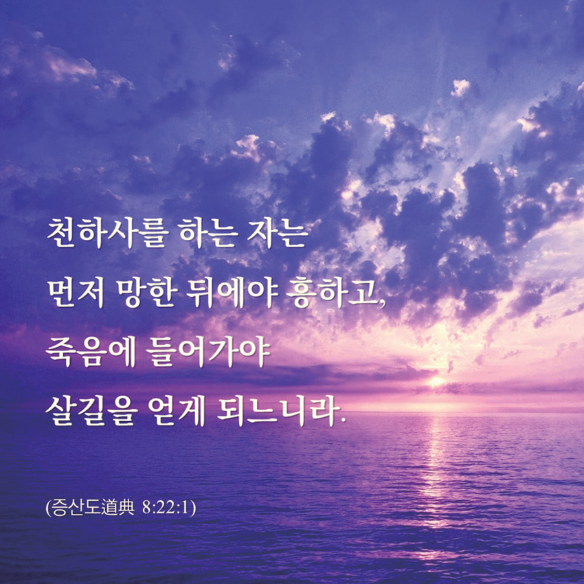 그래서 무엇보다 진리 공부에 집중했습니다. 『도전道典』을 아침부터 저녁까지 하루 종일 읽은 날도 많았습니다. 팔관법, 진리 맥 잡기, 증산도 진리 관련 책들을 반복해서 공부했습니다. 일주일 중 3일은 포교, 4일은 공부로 채우는 생활을 했습니다.