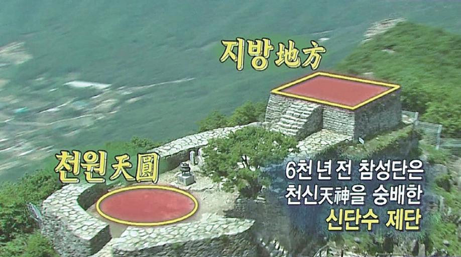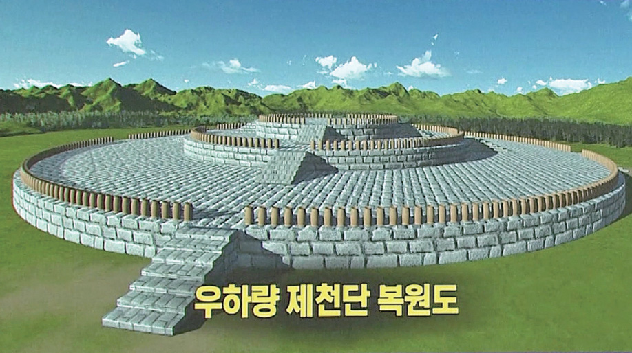그것이 바로 지금 현재 중국의 요령성遼寧省 지역에 있는 우하량이라는 곳에서 발굴된 이 제천단 유적입니다. 우하량 제천단도 원형과 방형의 적석총積石冢이 함께 발굴되었습니다. 천원지방의 형태를 그대로 띤 제천단의 원형으로서, 지금으로부터 5,500년 전 배달국 시대의 제천단 유적으로 추정할 수 있는 곳입니다. 이런 유적을 보면 우리 민족에게 제천 의식이 크게 자리 잡고 있었음을 알 수 있는데, 중국의 여러 문헌에서 “한국인들은 제천 의식을 가지고 있었다.” 하는 것을 공통적으로 기록하고 있습니다.