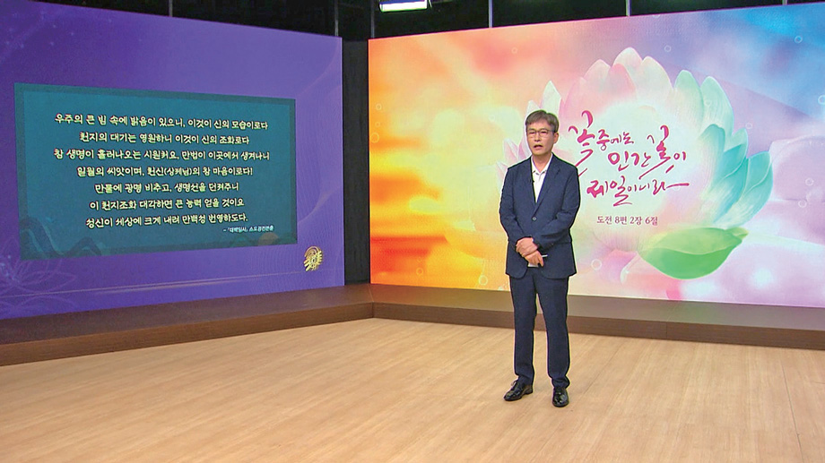 그래서 인간은 우주의 본래 모습인 광명을 받아 내려야 합니다. 인간이 우주로부터 받은 본성, 광명 자리를 깨쳐서 다시 빛의 인간, 광명한 인간으로 거듭나는 것이 인간 삶의 본래 목적이자 5,500년 전 발귀리 선인께서 제천 의식을 보고 전해 주신 가르침임을 알려 드리면서 오늘 말씀을 마치겠습니다. ◎