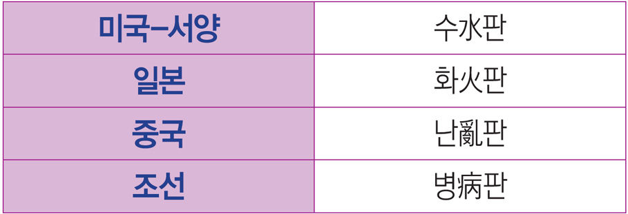 상제님은 이런 개벽 상황을 총괄적으로 묶어서 “미국과 서양은 수판이다. 일본은 화판이고 중국은 난판이다. 그리고 조선은 병판이다.”라고 말씀하셨습니다.