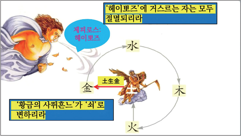 “장차 십 리 길에 사람 하나 볼 듯 말 듯한 때가 오느니라.”(도전道典 2:45:3)라는 상제님의 말씀이 있습니다. 노스트라다무스Nostradamus(1503~1566)가, 황금의 사뛰흔느가 쇠로 바뀔 때 인류가 멸절당할 것이라고 예언했습니다. 앞으로 추살 병란이 오면 그 충격으로 인류가 멸절을 당한다는 것입니다. 이 예언은 토생금土生金 이치를 천문의 원리로 얘기한 것입니다. 사뛰흔느는 토성土星입니다.