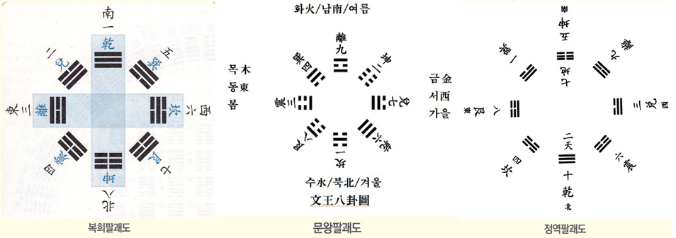우주사와 문명사와 인류사는 동일한 원리에 의해 전개된다는 것이 『정역』의 입장이다. 이를 가장 잘 대변하는 것이 괘卦의 변천사이다. 복희괘伏羲卦에서 문왕괘文王卦로, 문왕괘에서 정역괘正易卦로 괘의 형상이 변해 간다.
