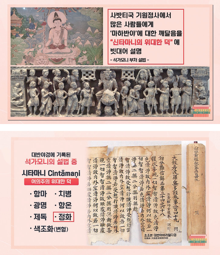 고대 인도에는 사밧티舍衛城(쉬라바스티)라는 나라가 있었습니다. 그곳에서 석가모니 부처님이 가르침을 설파할 때 신타마니Cintamani(Chintamani)의 위대한 덕을 이야기합니다. 신타마니는 여의주를 가리켰던 말입니다. 이 때문인지 우리 고대 기록에서 여의주를 ‘마니摩尼’라고 부르기도 합니다.
