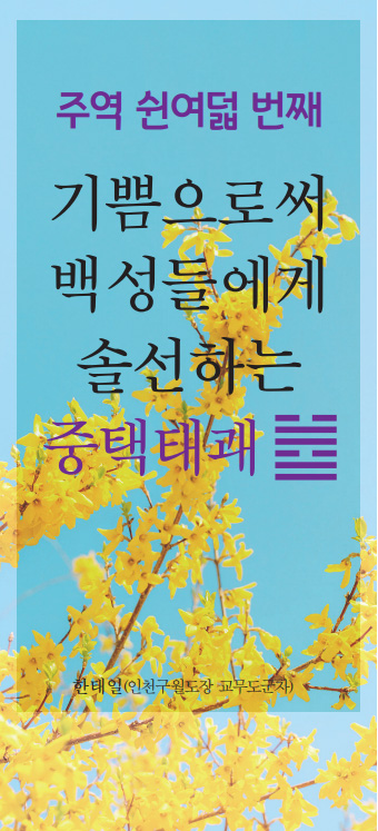 위아래로 거듭[重]하여 연못[澤]을 뜻하는 태괘[兌,☱]가 있는 것을 중택태괘重澤兌卦(䷹…